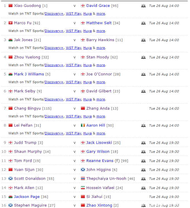 CCTV5+直播,14:00,卫冕冠军肖国栋VS格雷斯,寰宇冠军赵心童VS马奎尔